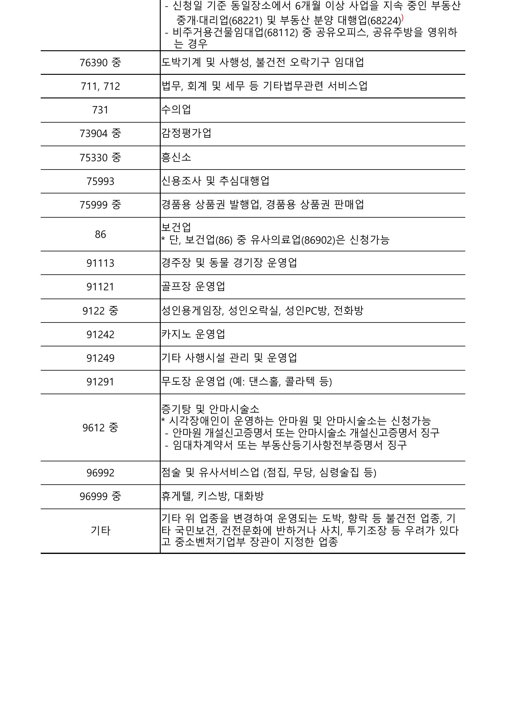 모든 업종이 지원 대상은 아닙니다. 사치품 판매업, 유흥업소 등 특정 업종은 지원에서 제외될 수 있으므로, 신청 전 반드시 해당 조건을 확인해야 합니다.